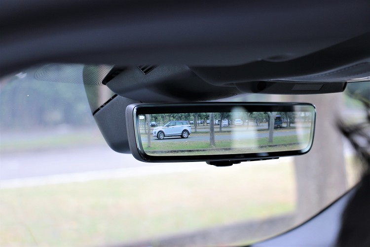 ▲業界首創的ClearSight可切換電子車內後視鏡,透過安裝於車頂天線的隱藏式攝影鏡頭,切換後視鏡顯示170萬畫素的高解析度畫面。