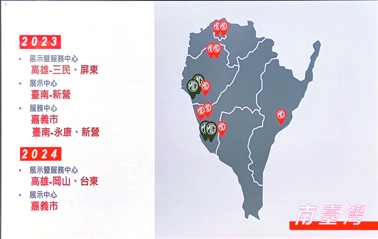 ▲MG Taiwan積極布建全台經銷網路,目標在5年內達到50間展示中心與60間服務廠