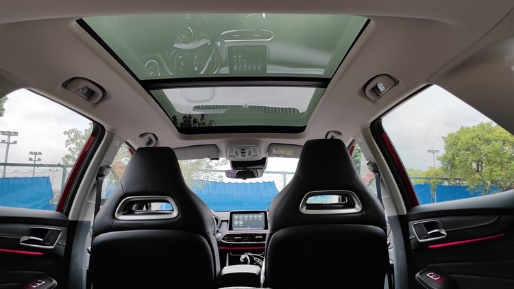 座艙佈局配備了同級唯一的雙前座電動一體式賽車椅,融合256色環艙氣氛燈並搭配高質感皮質與軟質料件交織鋪陳,營造出性能與典雅兼具的氛圍。還有超大面積沉浸式全景天窗放大你對車內空間的寬敞感受。前方控台則配置12.3吋數位儀錶與10.1吋懸浮式觸控螢幕,且支援Apple CarPlay與 Android Auto功能。值得一提的是,車上搭載的多媒體影音資訊系統繁體中文介面是專為台灣消費者使用習慣所設計,所以不管是閱讀或使用起來都特別順手。