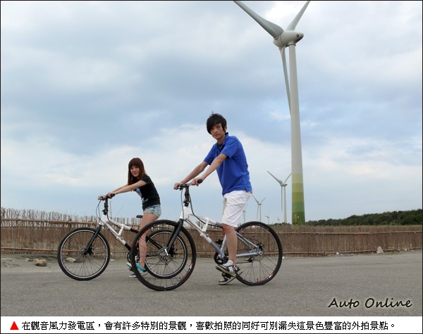 車道狀況:永安濱海自行車道若從永安漁港出發,經過綠色走廊到漂流木公園折返,再經過永安漁港到風力發電機海岸再折返回永安漁港,這樣的往返全程約26公里。沿途均為平路,無爬坡路段,惟多與汽機車共用車道,需多注意騎行安全。