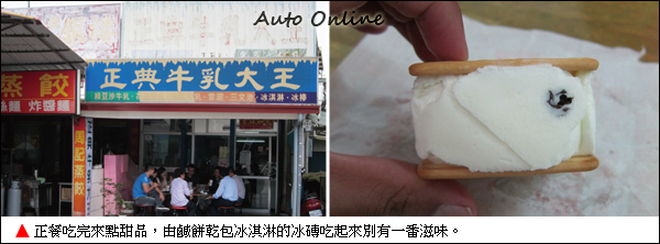 吃飽了來點飯後甜點,走進正典牛乳大王吃個冰磚吧!所謂的冰磚其實就是台灣版的冰淇淋銅鑼燒,不過這裡用鹹餅乾包覆,鹹鹹甜甜的滋味相當不錯。冰磚的口味相當多,一個才賣30元,而且現在還有提供宅配的服務!