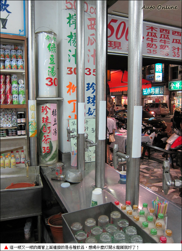 吃完包子要來點Speical的,來個鋼管好了!別擔心,汽車線上是普遍級雜誌,這裡的鋼管是指鋼管紅茶啦。據老闆表示為了應付假日龐大的旅客,因此大型的茶窖放在二樓,經過它特製的鋼管之後想喝什麼把水龍頭打開就好。我們喝的是老闆推薦的紅茶豆漿,味道還不錯。