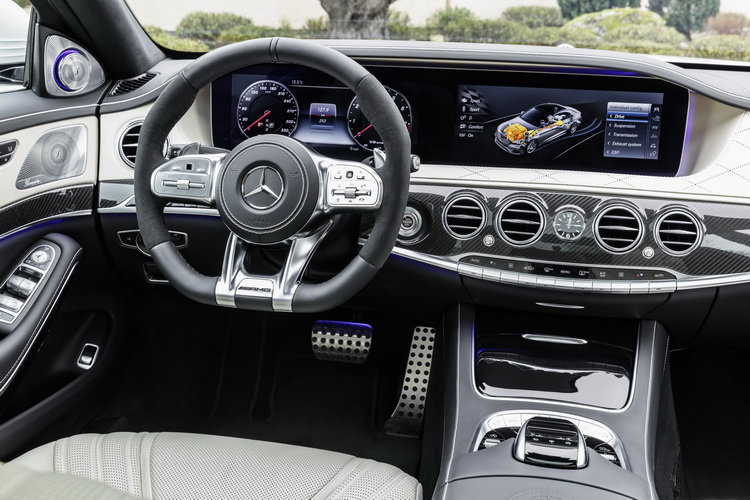 所搭載的AMG DYNAMIC SELECT提供「Comfort」、 「Sport」、「Sport+」與「Individual」四種駕駛模式。在S63 4MATIC+的Sport與Sport+模式之中,還提供了起步控制功能,只要駕駛者左右腳分別同時踩住油門與煞車踏板到底不放,然後放開煞車系統就會自動調整動力系統達到最快速的起步加速。