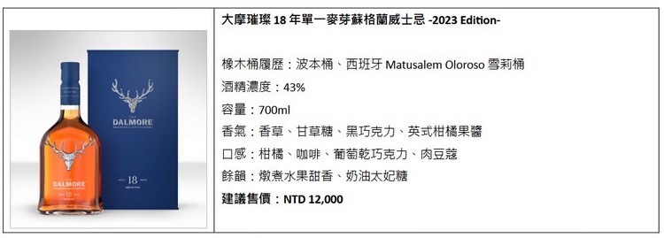 大摩璀璨18年單一麥芽蘇格蘭威士忌 2023年版本