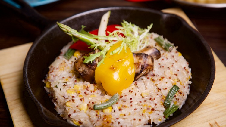 鮮蔬黎麥香米抓飯——在蒙大拿是炙手可熱的替代作物。ABV以適合搭配各式料理的香米抓飯為基底,加入紅藜麥、玉米以及長豆增加口感,一口咬下不僅有淡淡的荳蔻為,還有玉米的香甜,最後特別加入柑橘醬,幫手抓飯增添一層甘甜尾韻。