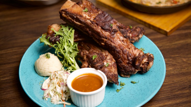 爐烤香料牛肋排佐馬鈴薯泥及涼拌高麗菜——ABV先用鹽和其他香料加入紅酒煎煮牛肋排,再行爐烤。並將煎煮後的紅酒牛肉醬汁淋上爐烤後的肋排。佐以馬鈴薯泥及涼拌高麗菜,爽口又解膩。另外一道料理「爐烤魚菲力佐水田芥醬」則是魚菲力捲以韭蔥和胡蘿蔔,再行爐烤。ABV特製的水田芥醬是用檸檬、水田芥加入苦艾酒熬煮而出。肉質細膩且味道較淡,可以很快吸入水田芥醬的美味。