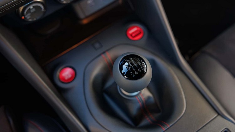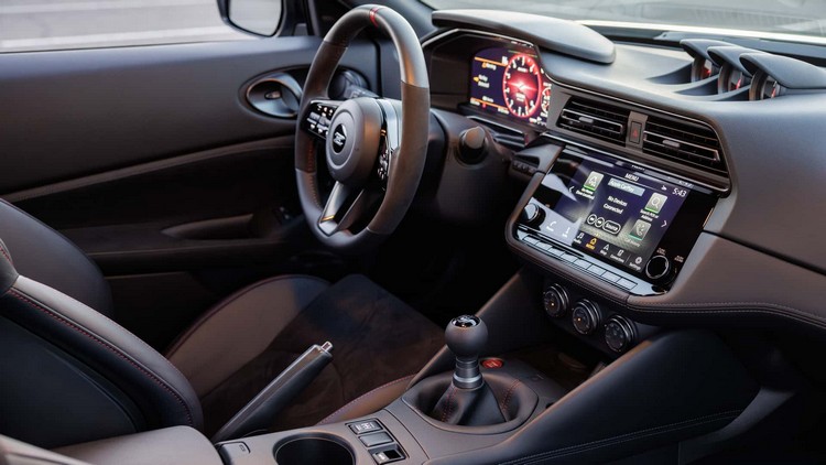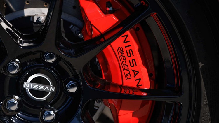 NISSAN 也替這款旗艦版 Z 導入來自 GT-R 的前煞車碟盤,以提供更出色的制動性能,同時車重也小幅減輕 19 磅。工程團隊在減重後同步優化前懸吊設定,並重新調整轉向機構,讓內部摩擦降低 20%。座艙內部則可見新的六速手排排檔桿,以及前述的無線充電板配置。