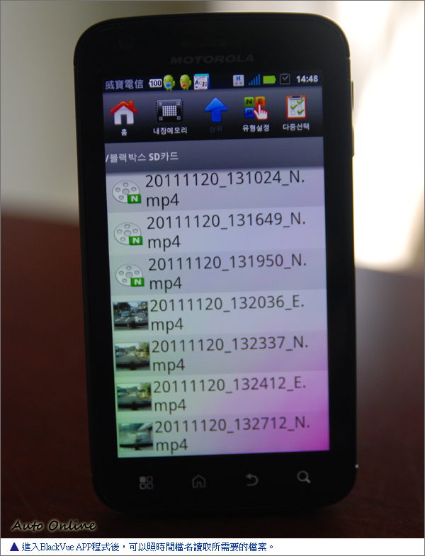 使用心得![]() ▲只要你的手機支援播放1080P的影片檔,均可順利撥放行車記錄器中的影片,左下角可顯示錄影時間與當時的車行速度。雖然DR400G-HD是韓國品牌,但卻具有全功能的中文化語音操作提示,透過語音提示,可以清楚知道DR400G-HD目前的工作狀態。不過在初始化後的第一次讀取SD記憶卡時的調整DR400G-HD功能,對於不常接觸電腦的人而言似乎有些複雜,以感應器靈敏度設定來說,可能需要重複好幾次的設定、路試後,才能將DR400G-HD調整至最適合你使用的最佳狀態。