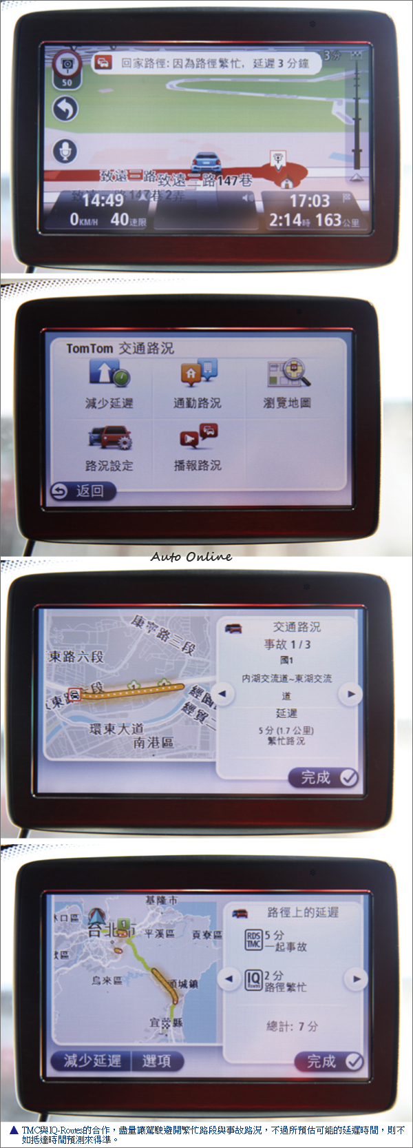 能依照不同時段規劃不同路徑的IQ Routes是獨家功能,至於TMC路況功能的實用性,個人則持保留態度了,首先是各地收訊狀況大不同,主要都會區開機幾秒內就收到,偏遠郊區可能一整天都還在搜尋,即使消息來源直接來自警廣,預估延遲時間準確度常有偏離事實,譬如雪隧傍晚逢週休必塞,但延遲時間居然顯示「7分鐘」,有實際塞過的人都知道起碼10倍以上起跳,若單為此放棄VIA 100而直上125似乎就有點不值了。