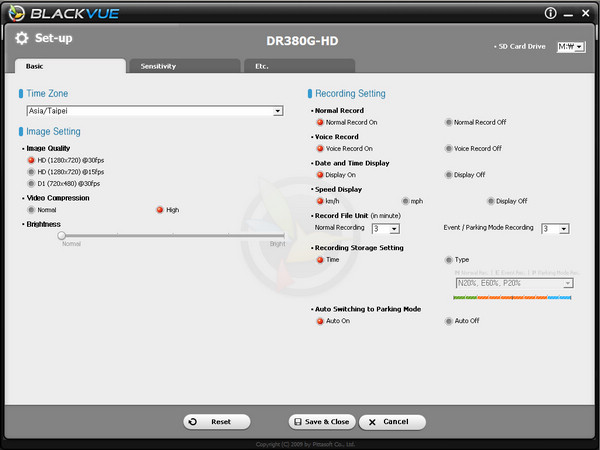 ![]() ▲細項設定相當多,雖然借測時軟體還沒有推出中文介面,不過中文使用者手冊已經出爐了,預料中文軟體很快就會問世。![]() ▲圓柱本體的大約10公分長,好裝好藏,沒有佔用前方視野的問題。電源插孔旁是AV Out,包裝內附連接線,這裡主要是用來調整畫面角度,只能顯示即時拍攝的影像,而無法提供重播影片使用。底座和本體可以隨時分離,拆卸方便,不過底座必須留在前擋玻璃上。![]() ▲大部分的日系車可以裝在後視鏡的後方,平時開車幾乎不會注意到它的存在,位置則是越高越好,喜歡低調的人,LED燈也可選擇關閉。