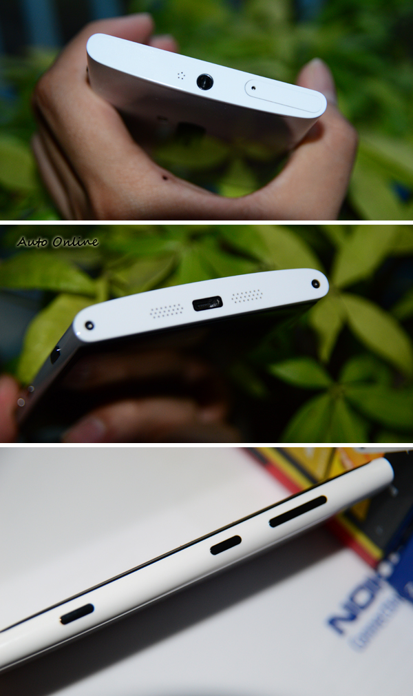 ▲Lumia 920 將耳機與充電孔分開,按鍵採三段式的設計。