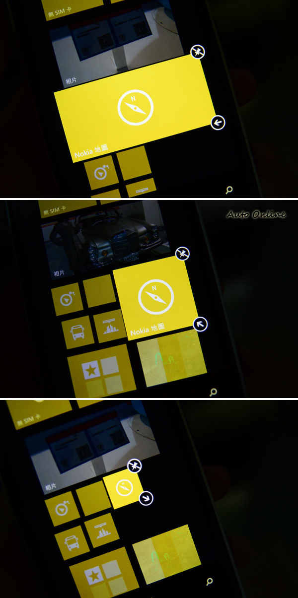 ▲WP8系統的Lumia 手機,在動態磚上新增大中小三種選擇,使用者可以自行安排,讓Lumia更具個人風格。