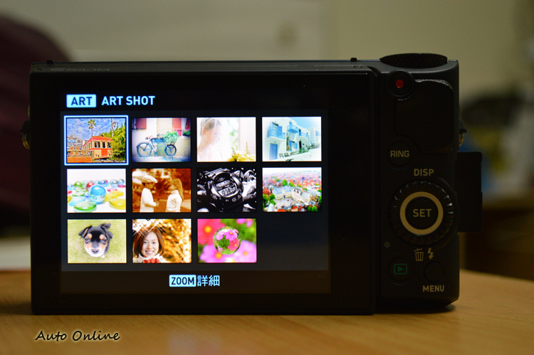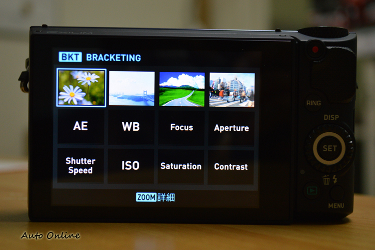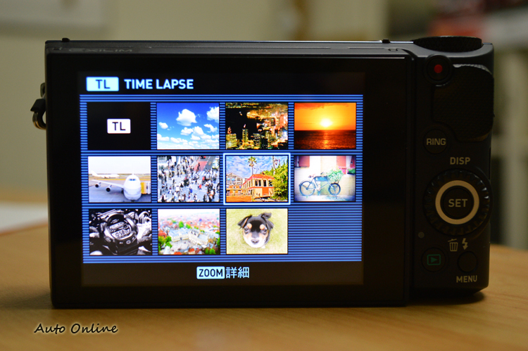 首創功能讓拍照更輕鬆身為一部旗艦機種,CASIO EXILIM EX-10具備PASM等基本的拍照功能,同時也具有錄影功能,可拍攝1080P的FULL HD影片。對於喜愛自拍的玩家,EX-10也提供12段美肌模式與顯示在螢幕上的水平線圖示。除此之外,有別於ZR系列需透過WIFI記憶卡傳輸照片,EX-10有內建WIFI傳輸的功能,透過手機版的EXILIM REMOTE應用程式與相機連結,便可將照片傳輸至手機中,方便照片的分享,另外EX-10也可透過應用程式進行遙控拍攝。 ![]() ▲螢幕顯示的電子水平儀,方便拍照時的水平調整。![]() ▲動態快門設計讓使用者能更輕鬆進行拍攝。![]() ▲EX-10有內建WIFI傳輸的功能,可與手機連結傳輸照片。![]() ▲除了基本的PASM模式外,EX-10也具有ART、BKT以及TL縮時攝影等模式選擇。![]() ▲ART SHOT是將攝影與特效合為一體,玩家可透過魚眼、玩具相機等11種不同的藝術模式的選擇,拍攝出更有趣的照片。![]() ▲TIME LAPS是大家熟悉的縮時攝影功能,除了標準模式外,內建10種不同的效果,讓玩家在這個模式下也能有不同的拍攝風格的呈現。![]() ▲二軸包圍式曝光拍攝模式是CASIO首創的拍照功能。![]() ▲使用二軸包圍式曝光拍攝時,玩家可在固定的搭配中調整所需的數值。![]() ▲二軸包圍式曝光模式下每按一次快門,會拍出九張不同效果的照片。![]() ▲使用單軸包圍式曝光模式,每次拍攝會記錄三張照片供玩家挑選。![]() ▲在二軸包圍式曝光模式下,透過相機瀏覽會以九宮格的群組呈現。
