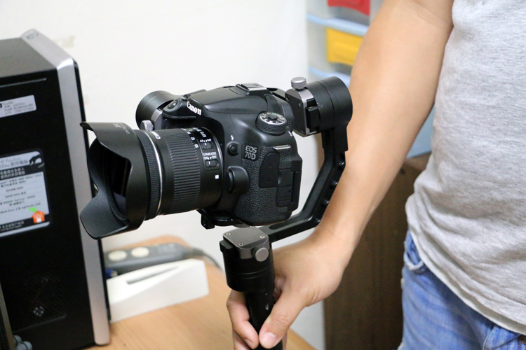 雖然原廠稱Z1 Crane為微單三軸穩定器,但是因為可承載的重量有1.2kg,筆者決定直接使用重量為675g的單眼相機Canon 70D進行測試,並且分別搭配Canon EF-S 10-18mm鏡頭(240g)與Canon EF-S 18-135mm鏡頭(480g)。首先先講平衡的部分,由於承載的重量相對於手機與GoPro種上許多,即使Z1 Crane使用高扭力馬達,為了保護穩定器仍需要先進行物理平衡後才可啟動。這部分一定要花點耐心,尤其是搭配18-135mm鏡頭的時候,因為鏡頭較長且重對於相機的重心影響相當明顯,對於三個軸的平衡調整也就難上許多,不過幸好Z1 Crane採用快速調整的機構,鬆開與鎖定都相當方便,也讓調整平衡的過程順利不少。