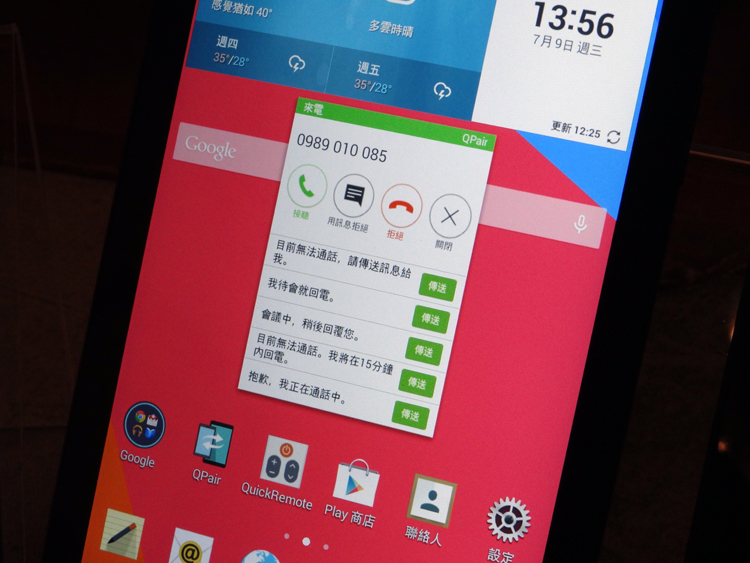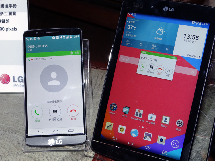 當你的智慧型手機接收到電話或訊息時,G Tablet也會同步通知你,你可以透過G Tablet接聽電話或是直接回覆訊息。