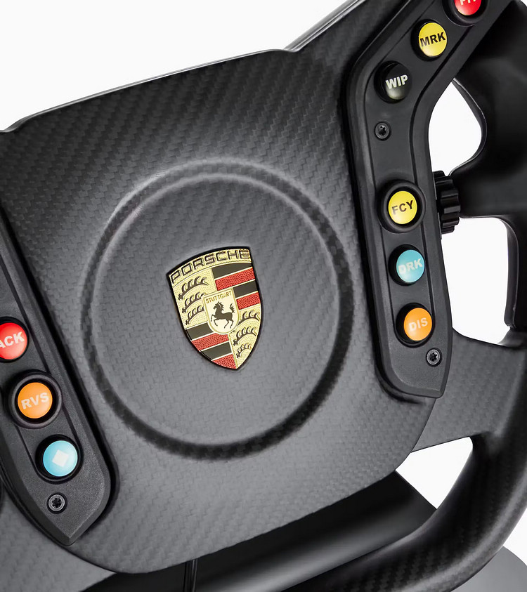 這組賽車電玩方向盤是以992世代911 GT3 Cup賽車配置的方向盤為基礎所設計,無論造型與功能都是忠實複製,並且標榜兩者採用相同的材質和製造方式,因此耐用性和握感防滑性能都與真品完全相同。