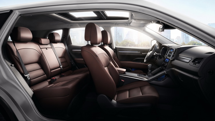 與傳統房車相比,Koleos的駕駛者著座位置大約高出150mm左右,在視野掌握所帶來的安心感上是SUV買家一向相當偏好的特點。車內高而寬且角度直立的前方控台給車內乘員安全與保護的感覺,中控台兩側設有把手也帶出正統越野車的用車特色。中控台中央則配備7吋或8.7吋觸控螢幕的R-LINK影音資訊通訊整合介面,在螢幕上兩指手勢放大縮小、滑動頁面、拖放物件等操作方式就和一般平板電腦一樣。