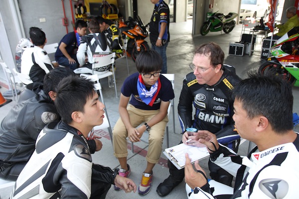 ![]() ▲一共十位外籍教練抵台授課,採取小班教學有別於其他駕訓多半採用示範教學的方式,加賽採用小組分組教學,每三位學員配一名外籍教練,上完課堂後開始賽道實作,一跑完馬上跟教練討論,然後再上課堂課.光一天下來每名學員就在大鵬彎跑上150公里左右,第一天課程結束後每個學員都說好累,但看到滿胎的進步個個雖累著卻又大呼實在太爽了.