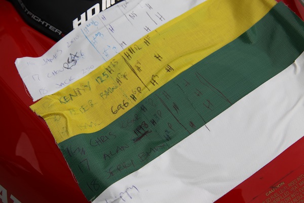 ![]() ▲出發前都有技師檢查車況,不合格車輛皆不能下場加賽教練私下表示台灣騎士的素質相當不錯,但比較害羞較少發問.他們不回告訴學員該怎們做,而是會反問學員你這樣做覺得怎樣?許多學員 自己已經很用力騎了, 但教練還是輕鬆的超車,騎的還是主辦單位提供的原廠車.不過其實過程中每位教練在車上都有個神奇記事本,每位學員在那個彎犯錯都被記錄下來,連手臂台用力都難逃教練法眼,讓大家讚佩教練專業. ![]() ▲教練隨時盯著場上學員動態![]() ▲上面密密麻麻的代號其實是記錄場上學員在哪裡犯了什麼錯![]() ▲實際跑完後馬上得和教練討論剛剛的情況![]() ▲親切女師一對一指導, 但他可是澳洲相當有名的女車手喔