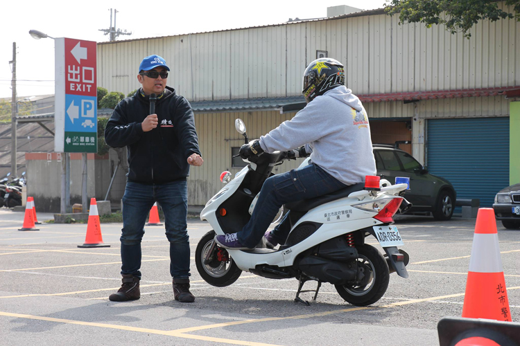 ![]() 北投分局於104年1月19日至23日舉辦組合警力訓練期間,特別邀請專業教練陳琮閔、趙健甫、陳俊廷等,引進美國加州超級賽車學校(California Superbike School)訓練課程,由基礎的駕駛姿勢修正,以至逆操舵(Counter Steering)、緊急煞車、小半徑迴轉等進階駕駛技巧,從陀螺效應等科學觀點切入,逐步建立員警對於摩托車的主動操控概念。現場並由教練於前方引導,透過實際演練方式,體驗各項駕駛技巧帶來對於車輛操控的全新感受。