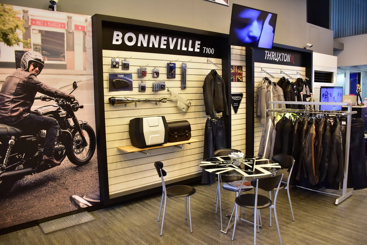 ![]() 2017年TRIUMPH凱旋在台首次打造品牌獨家專門店,店內設計延續TRIUMPH凱旋英倫精神,採用低調的「黑、灰、白」三色為品牌專門店主色,並運用極簡兼俐落的線條感與挑高設計規劃整體空間,襯托TRIUMPH凱旋率性大方英國風格,並規劃經典車款專區與原廠精品情境區,詮釋品牌獨特個性品味,展間懸掛印有「FOR ANYONE WHO GOES THE LONG WAY HOME」字樣的英國旗幟,意思代表若想一圓騎乘重機穿梭在遠途旅程的夢想,就先從擁有重機那刻開始,藉此鼓勵消費者勇敢追夢,釋放心中熱血DNA與對重機的渴望。