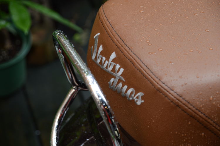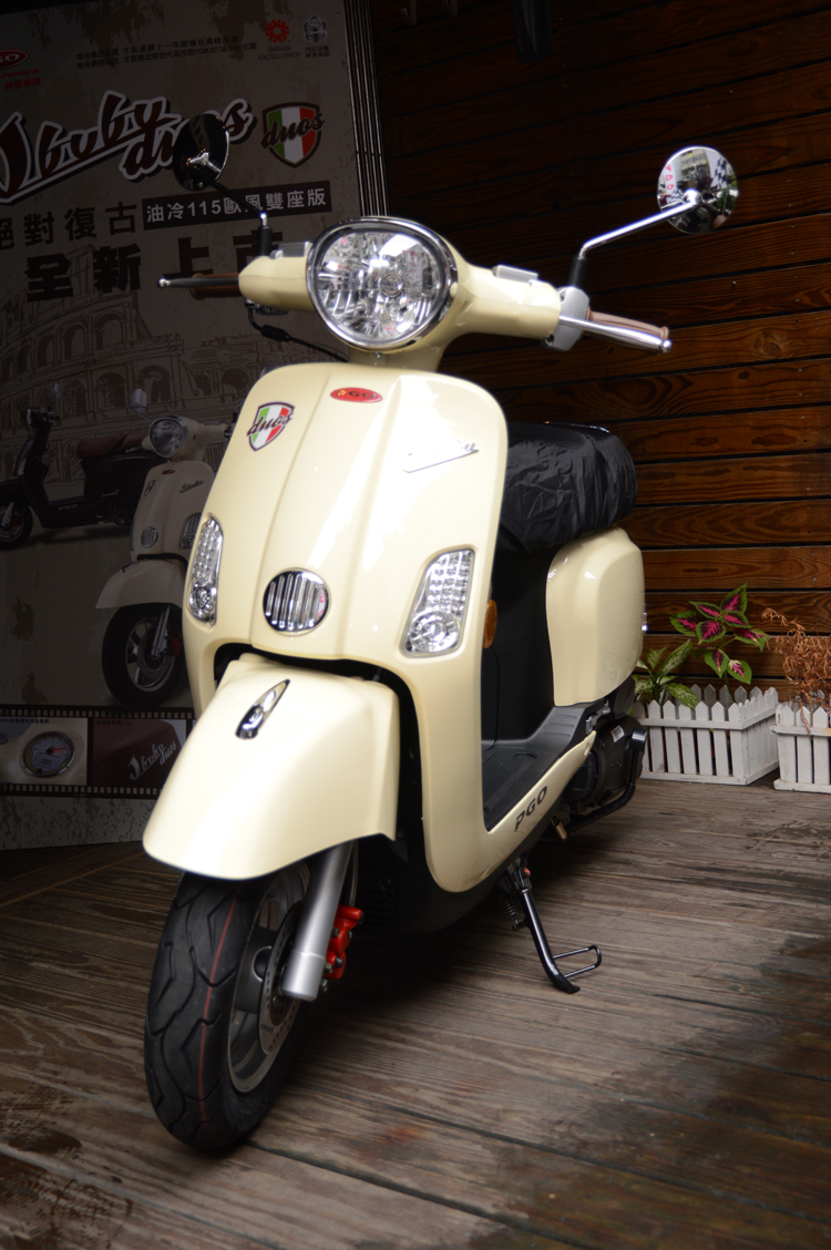 PGO J-bubu duos雙座版本,外型保有J-bubu既有的復古的線條特質,搭配棕色馬鞍式雙座墊,使整體的復刻味道更加提升。儀表採用具復古風格的MMI液晶儀表,讓消費者在騎乘愛車時,更加容易掌握行車資訊。此外,PGO亦將收納式的坐墊防塵套列為標配項目,除了方便車主保護愛車外,也同時表現出PGO對車主的用心。
