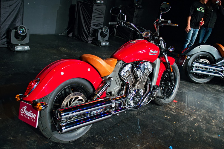 2015年全新Indian Scout是Indian旗下最嬌小的車款,25.3英寸的座高、61.5英寸的軸距和5.3英寸的離地間隙、31度傾角和低重心的設計,提供了卓越的高低速機動性。首度搭載69立方吋排氣量的V型雙缸水冷引擎,約為1131c.c.每缸為DOHC/4閥門發動機,EFI與60mm的節氣門體,轉速限制9000 rpm、最大馬力在於8,100rpm,在水冷系統的加持下,效能大幅躍進,最大馬力可達100HP,峰值扭力則為10.0kgm/5900rpm可提供72.2lb-ft的扭矩。搭配濕式離合器與6檔變速箱,可堪稱同等級車中馬力最強大,速度最快,提供騎乘者高度的操控性以提升駕馭時的樂趣。