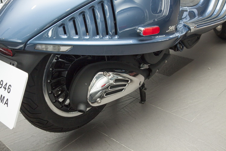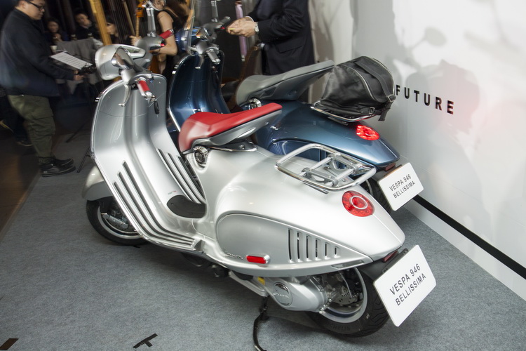 全新獻世的兩種車色傑作:金屬銀(Sliver Grey)與金屬藍(Silver Blue),高雅且迷人,與Vespa品牌本身的經典本質相輝映,隨著世代的變遷,調和給世人絕對經典的全新車色選擇。延續2013 年版Vepsa 946 “Ricardo Italiano”即擁有的大膽車身結構設計,全新的 2014年Vespa 946 “Bellissima”在車身設計上也較前一代較進化:可拆式雙載座墊 (可為雙載座墊,或拆卸成為單載座墊)、完美全車系LED燈設計、增加後置物架為標準配備,在整體視覺上,一體成型的車身看起來也更加輕巧。Vespa堅持一直以來的手工品質,除搭載ASR、ABS系統外,Vespa獨有的前懸吊單側搖臂設計,精密漸進式連動系統,搭配5段可調預載氣壓式水平懸吊,這個設計為Vespa史上首創,同時也讓Vespa946的車尾設計更靈活輕巧。