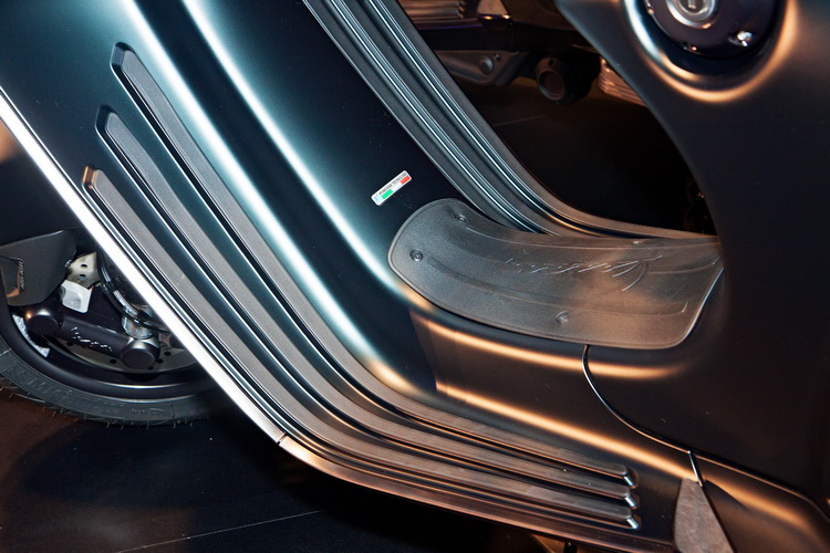 Vespa 946的名稱是為了紀念1946年,Vespa首度推出指標款車型的年份,而透過Emporio Armani的設計,更為Vespa 946的原創精神加入當代時尚的全新詮釋。金屬配件的部分經過電鍍處理,並進行緞面拋光,與車身的精緻細節搭配,創造出內斂而含蓄的獨特魅力。Emporio Armani 的字樣出現在車身側面,而品牌標誌性的老鷹標識則位於車前燈上方。