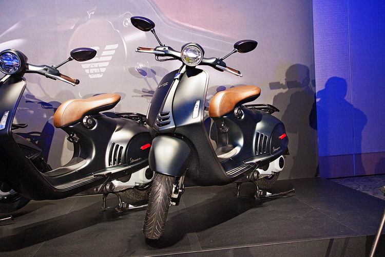 為了紀念2015年 ─ PIAGGIO集團130週年及Giorgio Armani成立的40週年 由Emporio Armani設計出一款限量的Vespa 946,使用了Armani最經典的低調品味灰黑色系,同時加入了一種只在特殊光線下才能看到的微妙綠色,搭配出此次優雅的全新Vespa 946 Emporio Armani。