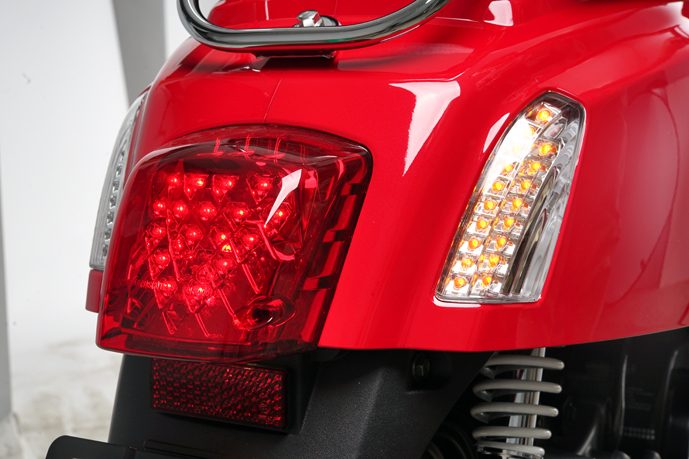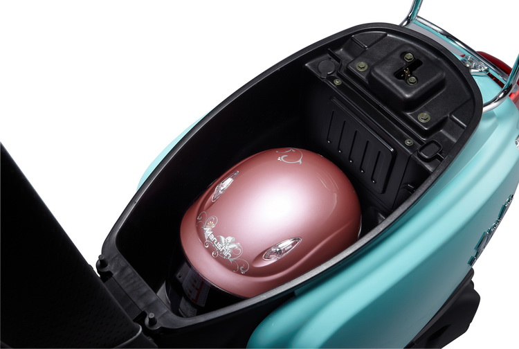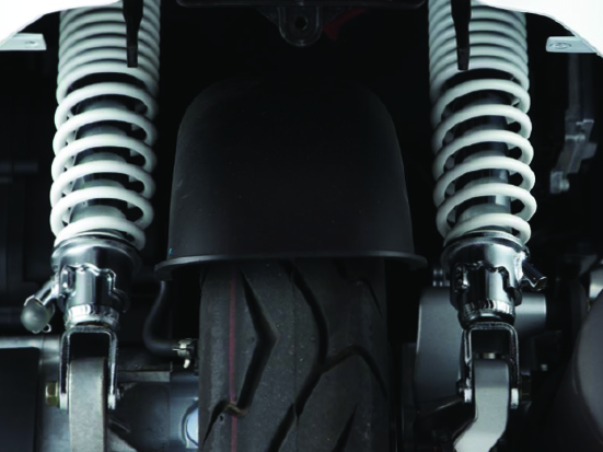 在卓越的動力與性能下還有許多有感的貼心設計,譬如:超省力中角柱即使著高跟鞋也能優雅地駐車;超大置物空間放入3/4罩安全帽、托特包、雨衣加上折疊傘從來不是夢。唯一標配五段式可調後雙避震輕鬆克服各種不同路況,動靜之間都讓人感到心動。