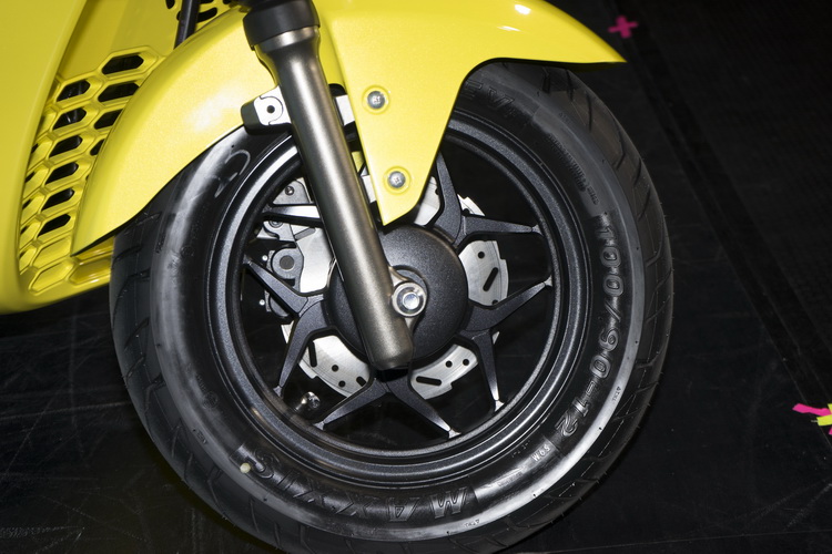 並且深入了解到台灣車主的用車需求,包含CBS連動式煞車、五段可調雙槍後避震、內嵌式雙前置物空間、前置USB專屬插槽、26.5L大容量置物空間、與12吋輕量鋁合金輪圈等優質配備規格,並且針對省力駐車架改良設計,讓省力效果優於同級電動車約11%。