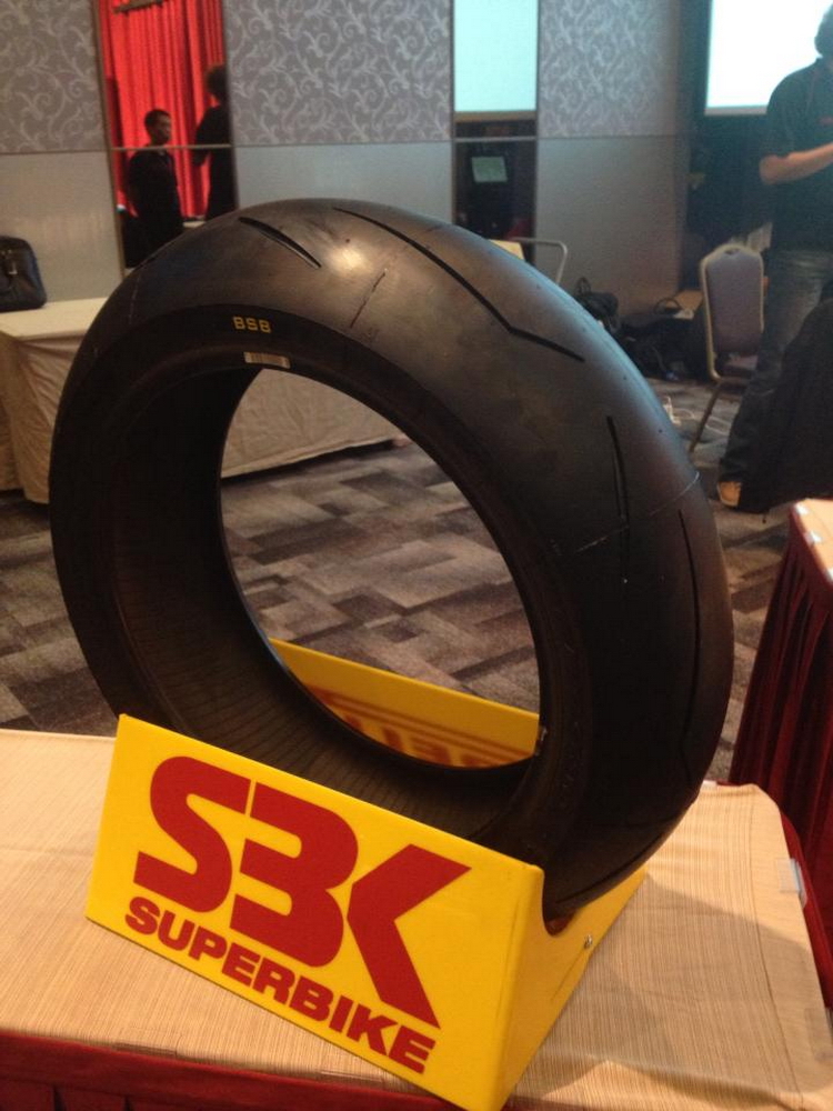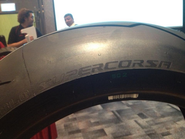 另一項產品亮點是DIABLO SUPERCORSA BSB,這條輪胎是2013年BSB(British SuperBike Championship)英國超級摩托車賽事的唯一指定用胎。由於台灣氣候與英國同樣是多雨,因此廠方人員表示這條胎在濕地有相當不錯的表現,相當適合台灣地區使用。