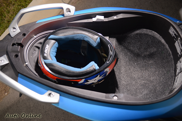 整個置物箱空間可以放進一頂全罩式安全帽還有一些剩餘空間,算是有一定水準的表現。
