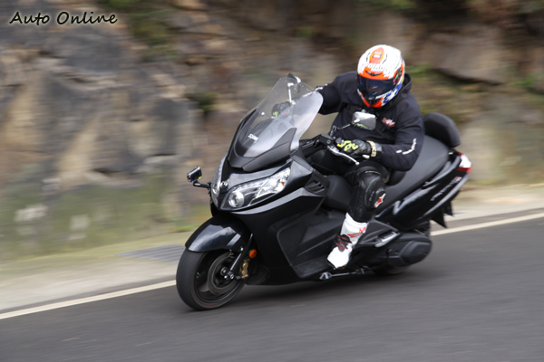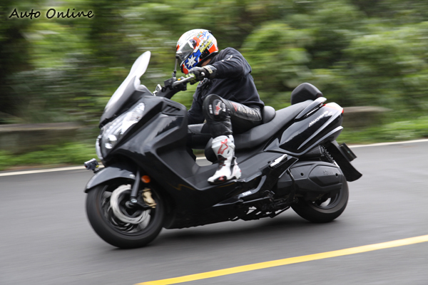 ▲MAXSYM 400i的車頭靈活不笨重,轉向性也不賴。但偏軟的懸吊不利於山路駕駛。
