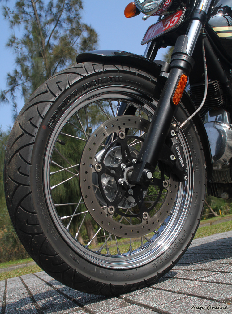 V7 Classic排氣量雖然有744cc,很多人看到數據後會覺得馬力應該跟ER-6n差不多,實際上這台車最大馬力僅48.8hp,不過在3600轉時即可釋放5.58kgm的扭力峰值。也就是說這台車基本上不是讓你騎快的一台車,如果您捨得不然拿來載瓦斯桶那低轉高扭的特性倒是很合適。不過我想應該沒幾個人捨得那美觀的電鍍件被刮傷吧。
