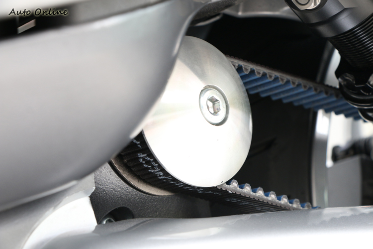 ▲為了有良好的配重,Gogoro以Gates碳纖維複合皮帶取代輪轂馬達。