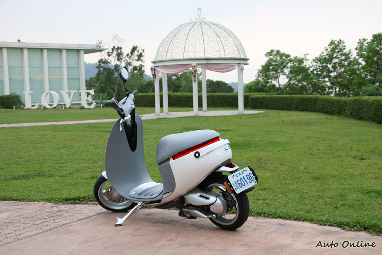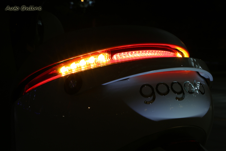 ▲採用LED 環抱式尾燈提升夜間的辨識度,為了加強品牌形象,Gogoro還刻意將牌照燈設計成反向照明。