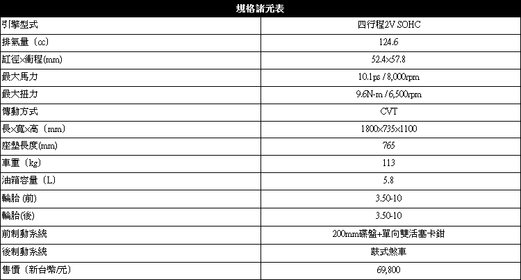 ▲BON 125 ABS沿用改款前的動力配置,最大馬力10.1ps@8000rpm,最大扭力9.6N-m@6500rpm。