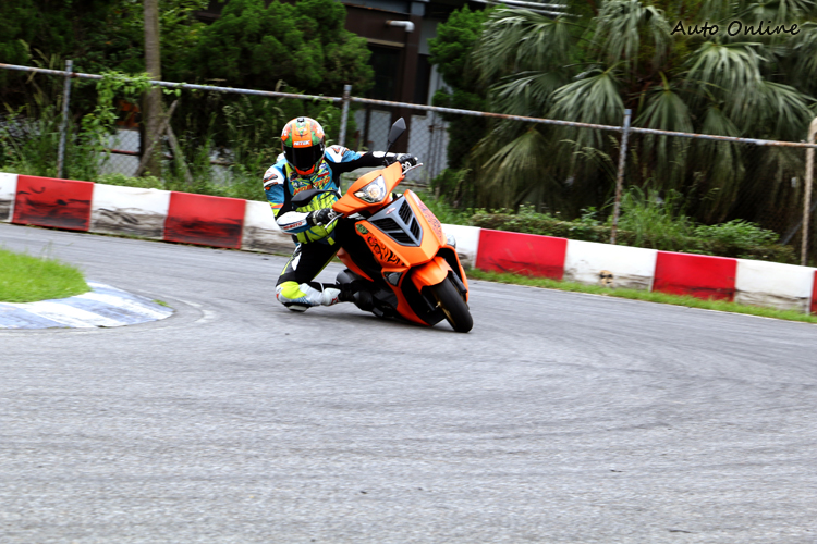 ![]() ▲彪炫版搭載KENDA K702熱熔胎。如果要說這彪炫版在操控上最大的改變,我覺得是它帶給騎士更多的信心,因為標配的KENDA熱熔胎抓地力表現比一般版的原廠配胎好,過彎的穩定性也相對的提升,讓熱血一點的騎士在殺彎時更加游刃有餘,當然,也要提醒各位讀者,沒有穿著護具以及找到適合的場地,千萬不要進行太激烈的操駕,畢竟安全才是最重要的課題。 ![]() ▲熱熔胎的搭載提升過彎穩定性,讓騎士更有信心面對彎道。