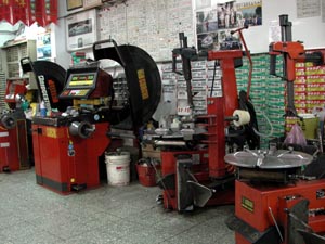 ![]() ▲乾淨的工作環境其實到過該店的朋友不難發現,店內佈置相當具有日式風味,地板乾淨、光線充足就連拆裝輪胎機跟輪胎平衡機都乾淨的閃閃動人,員工身著統一的制服,現場嘹喨的招呼聲令人感動,工作人員乾淨俐落的工作效率都相當讓人耳目一新。現場陳列各式進口、國產的輪胎、鋁圈樣樣齊全,不管是剛在日本浦發表的S-03跑車胎或是針對一般市區使用的轎、貨車街胎或是特殊RV 4X4輪胎乃至於電視台SNG轉播車所需要的超載重輪胎....一應俱全,真是令人大滿足。