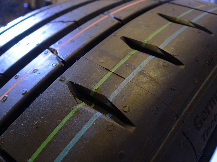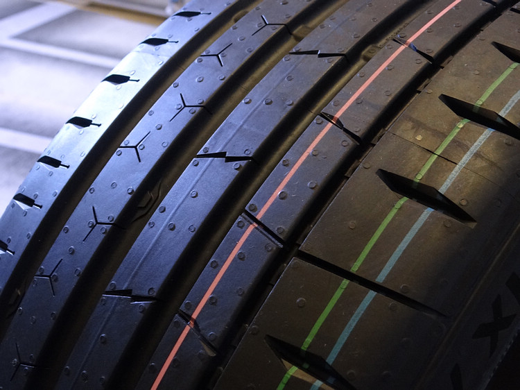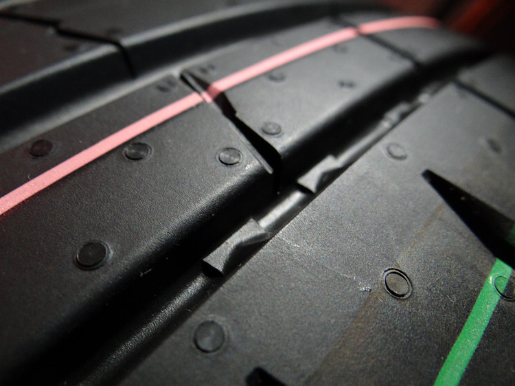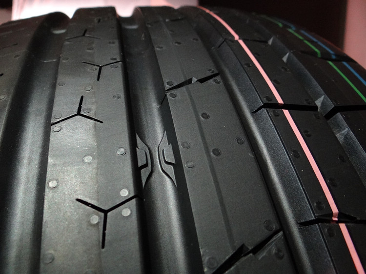 新一代抑噪設計的概念則是在縱向溝槽內植入可「破壞」噪音聲波傳遞的窄化造型設計,除了具備降噪功能,利用文丘里效應,也可加速中央溝槽的排水效率,是溼地煞車距離縮短、溼滑路面操控更好的幕後功臣之一。