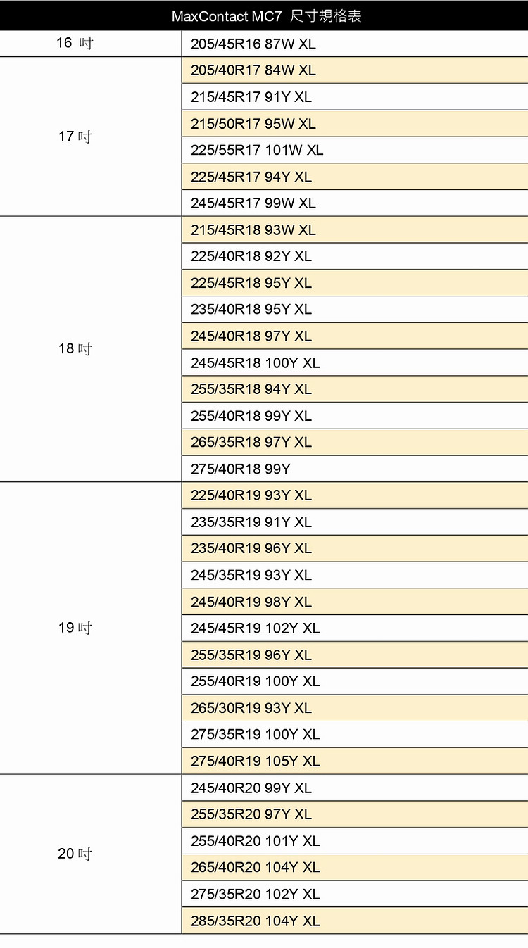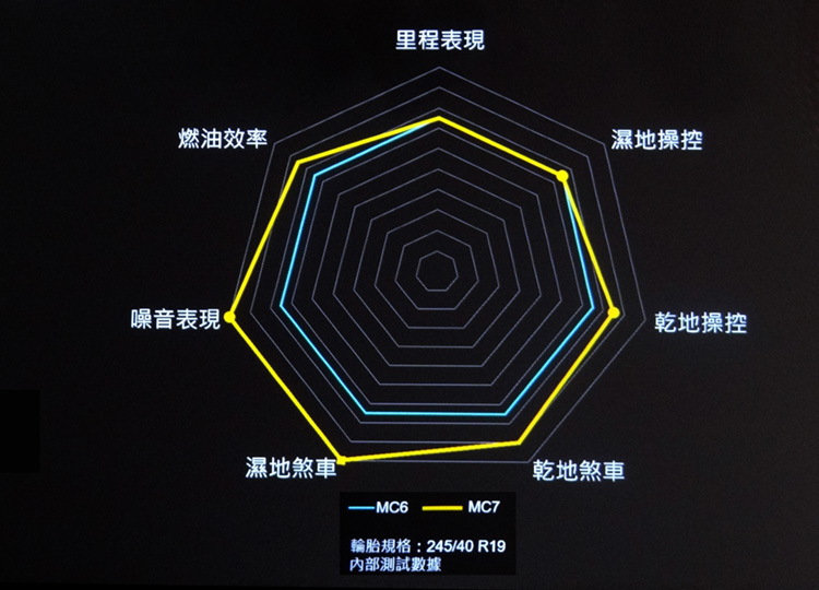 在Continental的產品定位中,MaxContact MC7(以下簡稱MC7)位居標榜極致操控的SportContact 7(SC7)和強調運動操控的PremiumContact 7(PC7)之間,是一款以「安全」為核心,能夠提供操控極限,又保有靜謚舒適的胎款。