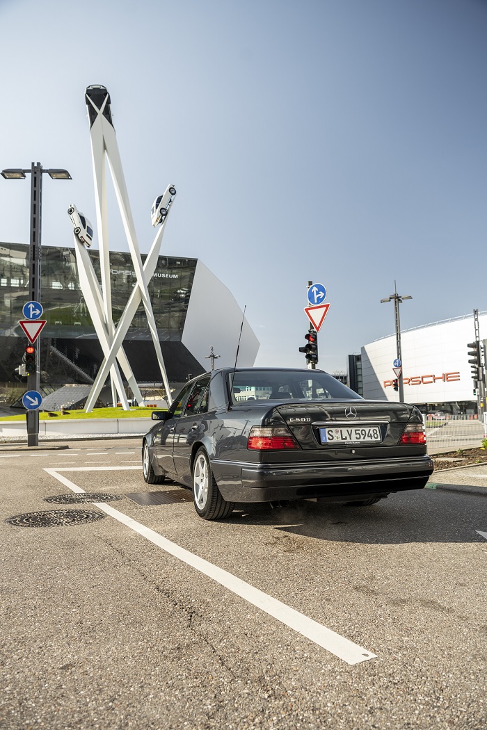 500E有著適合長途行駛的四門房車身段,卻有著超跑級的性能,這輛傑作在1990年巴黎車展上廣受矚目,並於隔年1991年春天發售。為了慶祝500E成為經典之作和紀念誕生30週年,保時捷博物館邀請時任產品開發經理Michael Hölscher,以及時任原型車部門主管Michael Mönig,請他們介紹這輛車的精彩故事。這兩人就是在這輛車的開發專案中認識的,而他們上一次坐在500E內大約是三十年前,這次他們要開100公里,途經祖文豪森、威莎赫、辛德芬根三地,以保時捷博物館為出發點與終點。