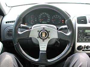![]() 專門研發汽車改裝零件的翔展實業,對FORD Tierra Life 1.6小改一番有何困難?首先裝上一組自家研發的SRR避震器、車身降低、換裝17吋鋁圈,內裝部分改個MOMO賽車方向盤。雖然只是如此小改一番,但是操控感覺提昇不少,彎道極限相當驚人,路感的清晰程度絕對不是原廠一般市售車型所能比擬的。當然,如果能改顆手排變速箱更棒!