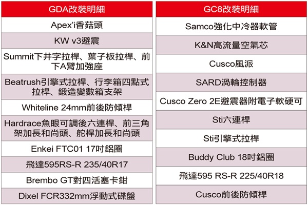 性能車或者賽車跟一般街車相比,前者的車寬永遠比後者大,為了就是讓輪距加寬能有更好的操控,如果接車想要改寬體在台灣就必須仰賴店家的手工改法。兩台SUBARU Impreza改寬體式樣,改裝店家不同手法也不同,不過在路上都一樣的吸睛程度。