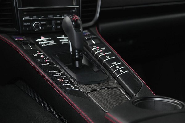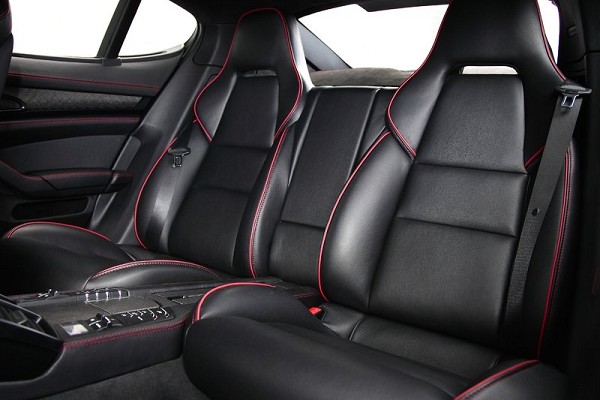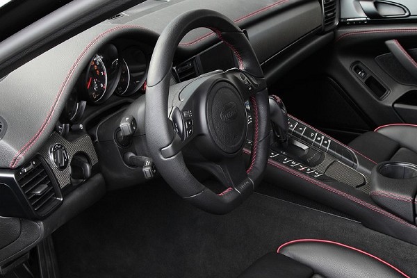 ![]() TechArt Porsche Panamera Black Edition內裝也發揚了它的名稱,全車使用黑色皮革跟黑色碳纖維飾板為主軸,散發出強烈的個人風格;皮革與皮革連接處採用紅色縫線做收尾,讓看過的人印象深刻。排檔桿部分,原本採用金屬色澤的地方也都被黑色所取代,上頭的檔位顯示字樣改為紅色,跟皮革的紅色縫線相互輝映。