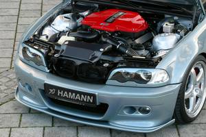 為搭配E46 M3這部最佳改裝素材,HAMANN首先換裝一向廣泛使用於該廠改裝車輛上的M5引擎。此顆5.0升引擎在落入時必須修改所有引擎腳位置與油底殼的形狀,而這方面的改裝則都依賴該廠技師手工打造。針對動力性能,首先HAMANN採用電子式控制節氣門方式來作進排氣的強化;再者,該廠也替引擎進行內部機件的強化動作,使引擎耐久性提升。除此之外,HAMANN也量身訂做出全段的不鏽鋼全段排氣管,讓車迷在提升性能的同時,也能享受到如天籟般的排氣聲浪。最後統合動力、重新設定點火及供油的ECU更是將動力能發揮淋漓盡致的最大功臣。