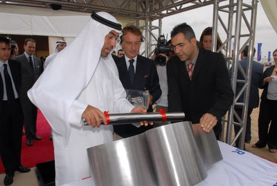 ![]() ▲園區整體設計預覽圖,下方是F1於2009年的比賽賽道。參加動土儀式的貴賓有Ferrari的大老闆Luca di Montezemolo、阿拉伯聯合大公國的多位閣員以及國際土地開發機構負責人通通都出席了這項動土儀式。Luca di Montezemolo在致詞中表示,今年對Ferrari是相當值得慶祝一年,不但在GT賽事中獲得了勝利,更一口氣在F1場上拿下睽違兩年的車隊與車手世界冠軍。這次在杜拜興建主題公園除了迎接2009年在杜拜正式開賽所帶來的的龐大商機外,Ferrari也希望有更多的車迷可以到此一遊,更加了解Ferrari的造車精神。