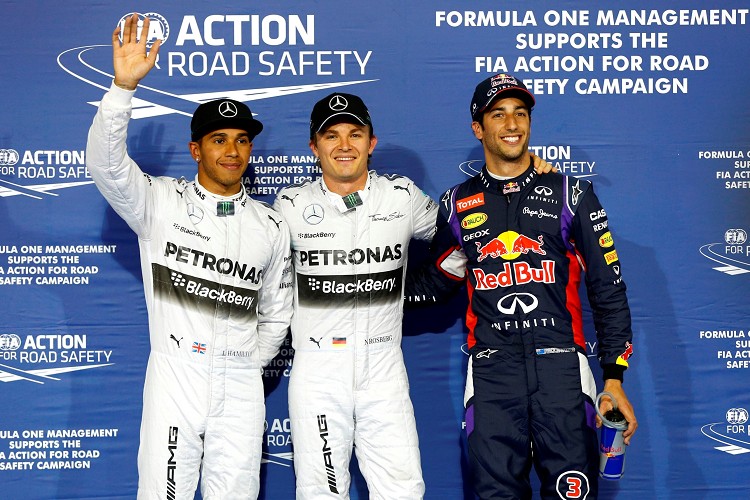熱帶沙漠氣候的巴林站,Mercedes-AMG PETRONAS F1車隊從練習賽、排位賽到正賽始終保持無比優勢,不僅於排位賽時由Nico Rosberg與Lewis Hamilton分別拿下桿位與第二順位起跑的頭排位置,正賽時同樣是Mercedes-AMG PETRONAS F1車隊的天下,由Lewis Hamilton拿下分站冠軍,Nico Rosberg以亞軍作收,自2014年F1開賽以來,連三站站上頒獎台。以站上頒獎台的次數,清楚展現Mercedes-AMG PETRONAS F1車隊於2014年F1賽季開賽以來的強勁實力,其他車隊難以匹敵。